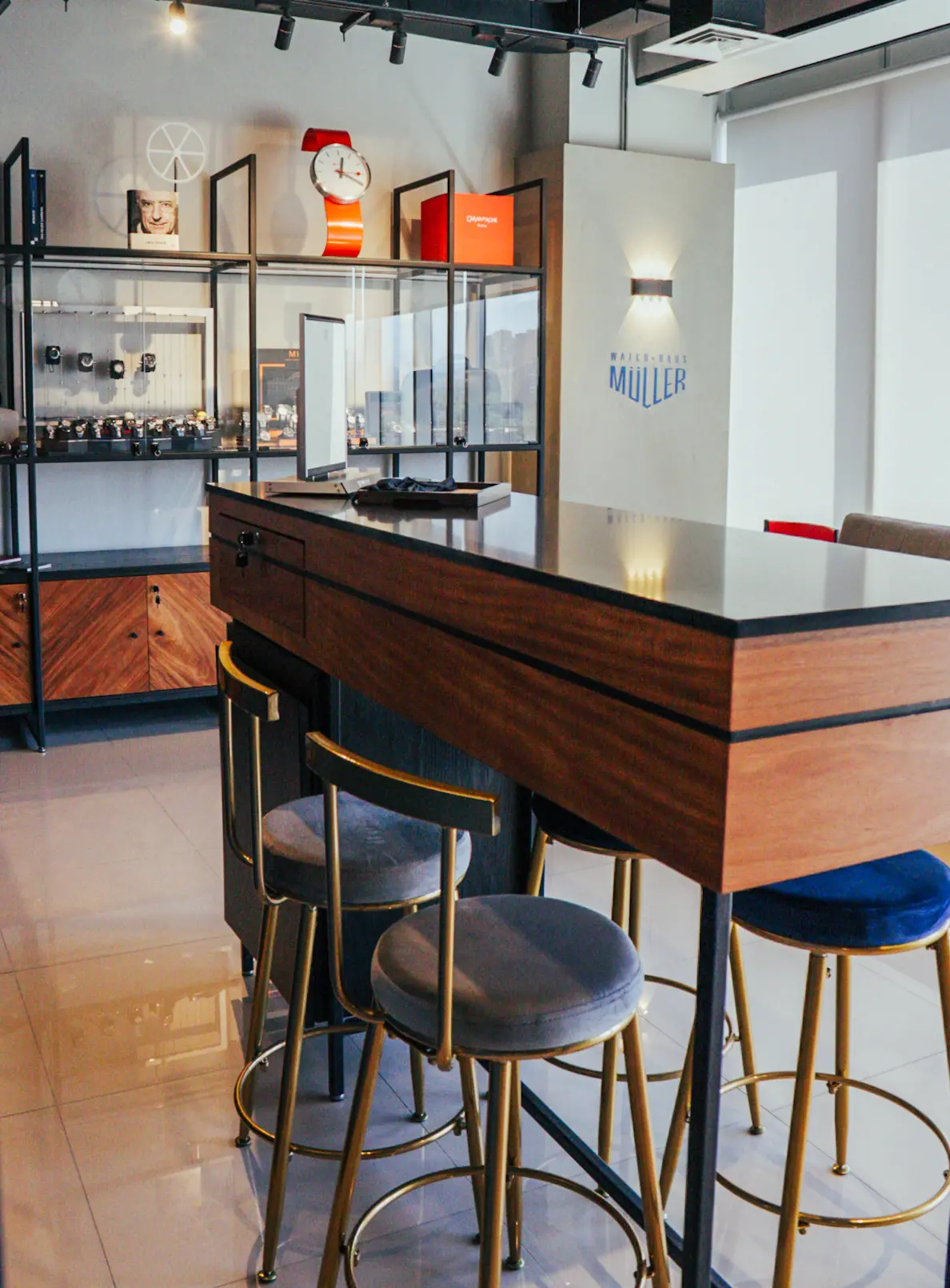 En Wood&color, entendemos que cada espacio tiene su propia identidad, por lo que en el proyecto Lihue nos enfocamos en crear muebles a medida que se integraran perfectamente con la estética del showroom. Trabajamos en estrecha colaboración con el cliente para asegurar que cada pieza de mobiliario cumpliera con sus expectativas, fusionando funcionalidad y estilo en una propuesta única. El uso de maderas nobles y técnicas de acabado de alta gama no solo resalta la belleza del ambiente, sino que garantiza la durabilidad y resistencia necesarias para un espacio de alto tránsito. El resultado final es un showroom donde cada elemento, desde las vitrinas hasta las mesas de exhibición, refleja la esencia de la relojería de lujo y la dedicación a la perfección en cada detalle.