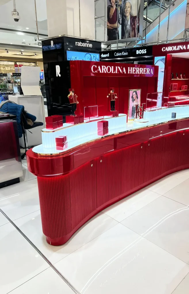Este proyecto aportó un valor distintivo al ambiente de la tienda, realzando la experiencia del cliente y reforzando la identidad visual de Carolina Herrera en el mercado chileno.